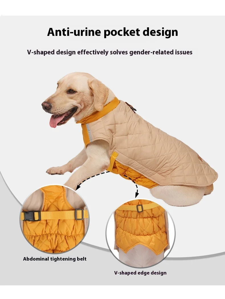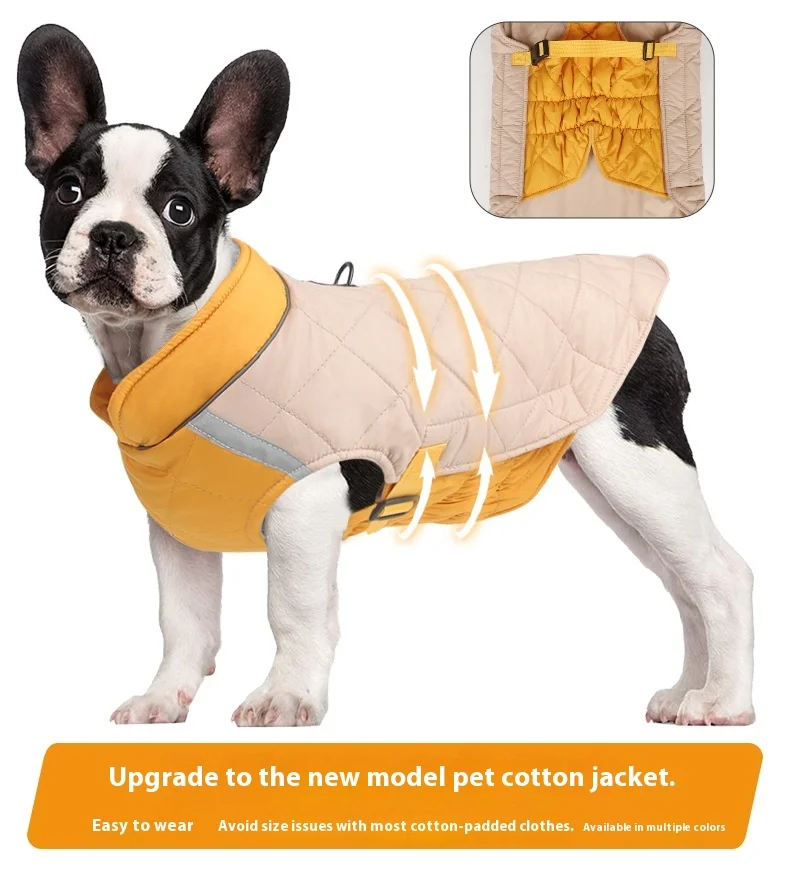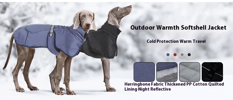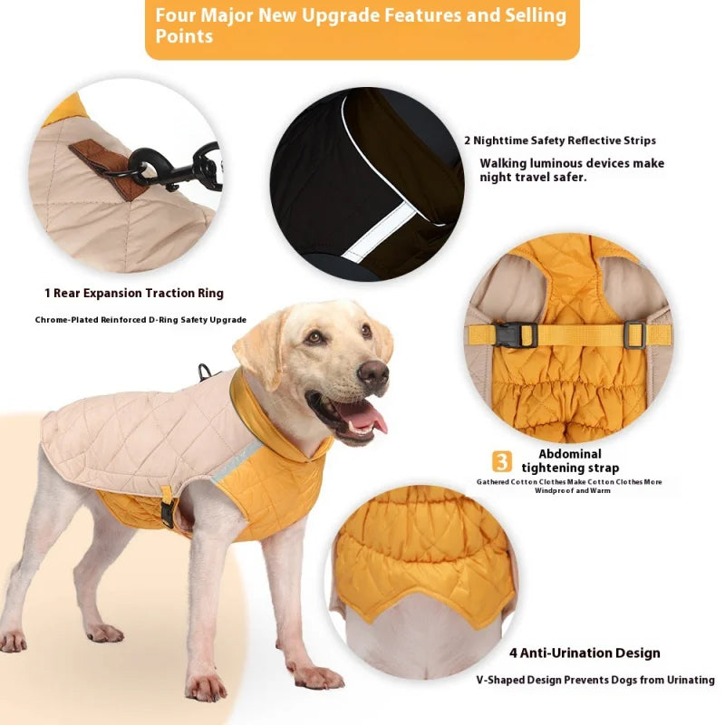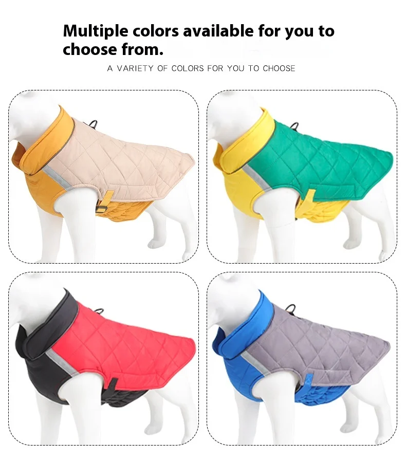Thickened, windproof dog jacket designed to keep pets warm in cold weather