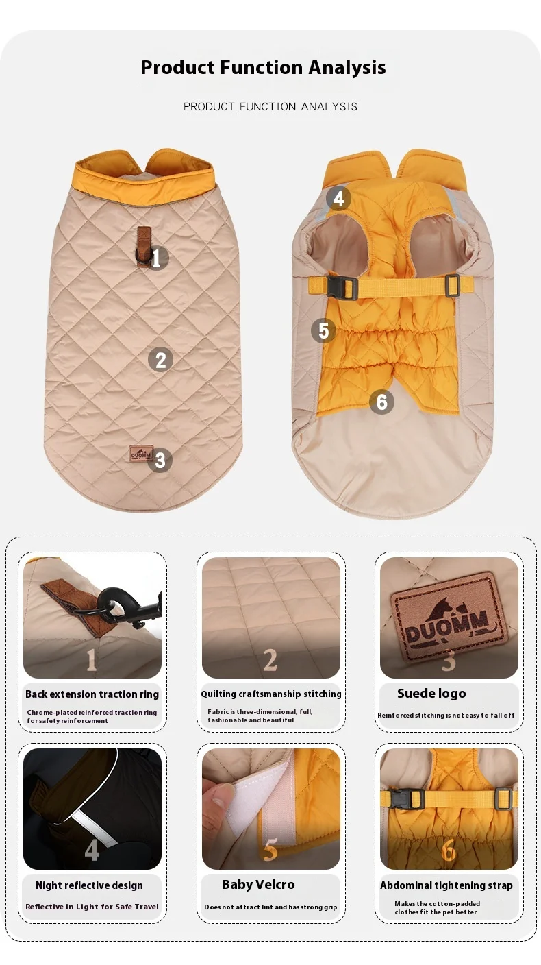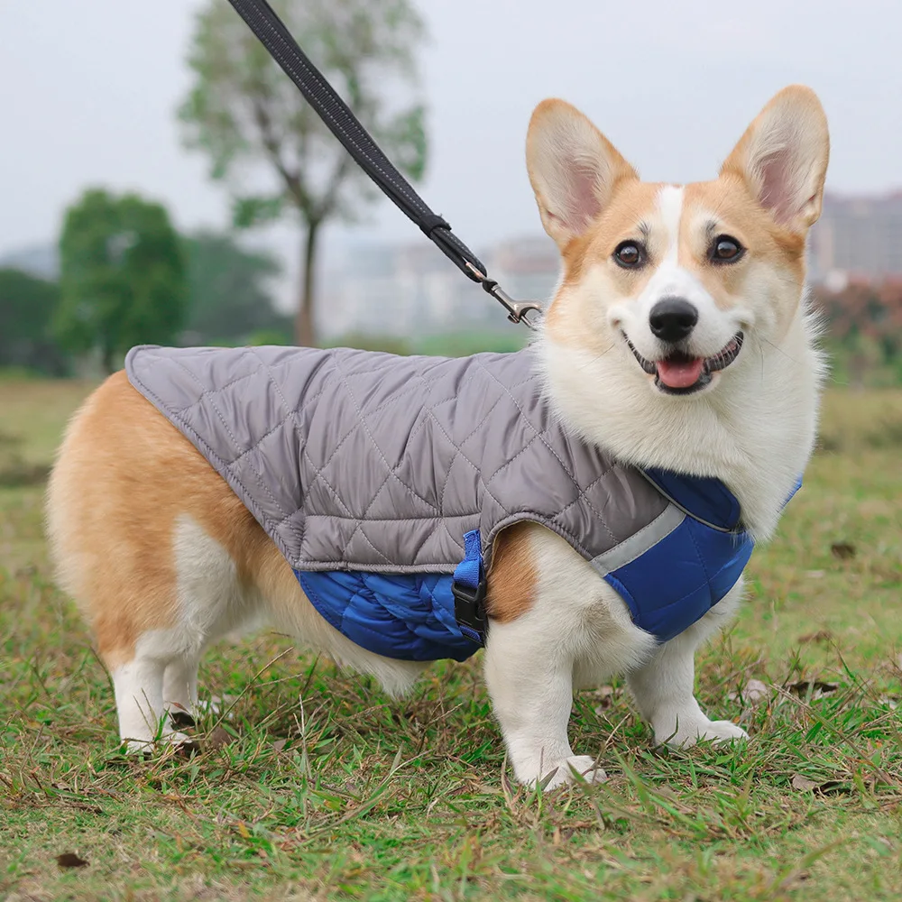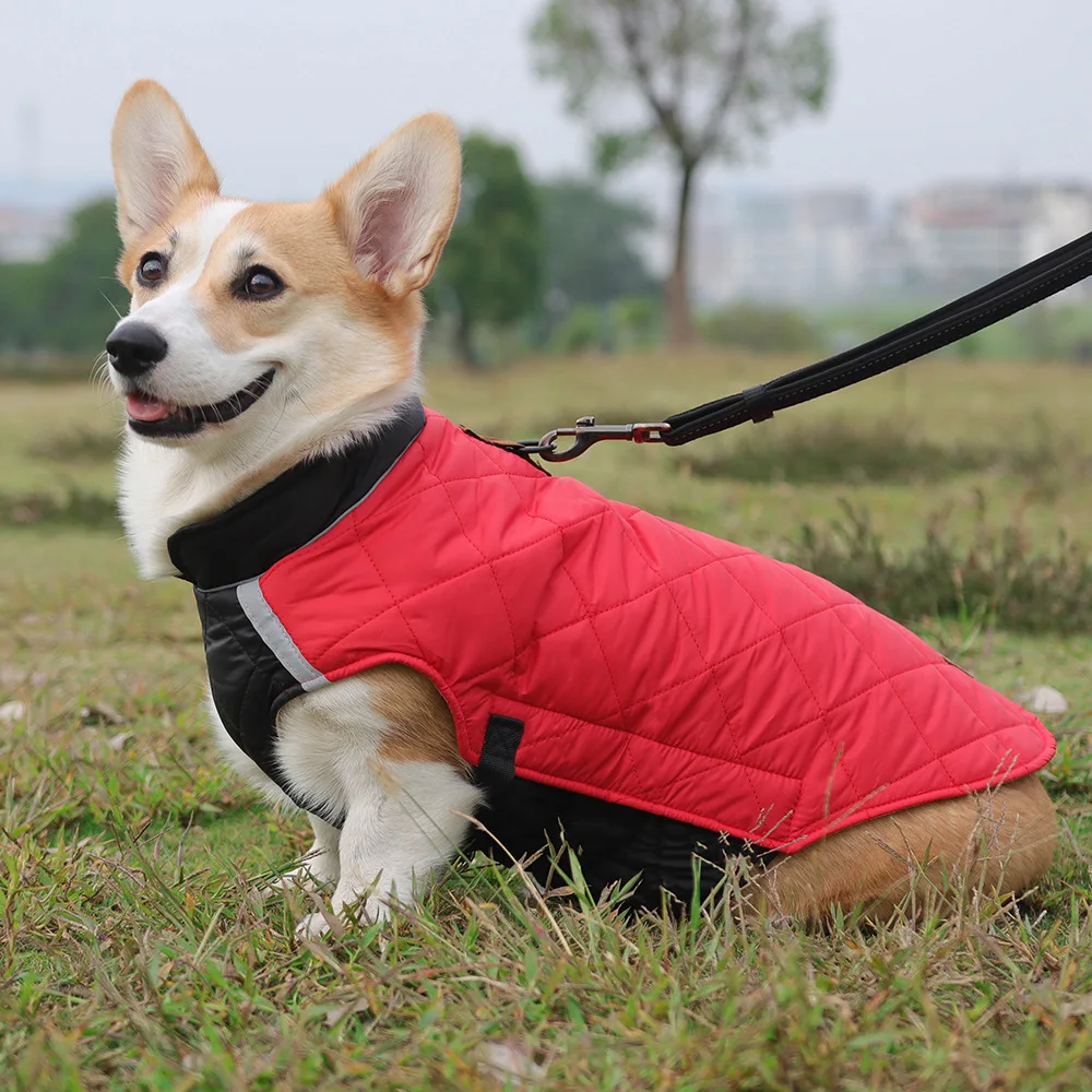 Thickened, windproof dog jacket designed to keep pets warm in cold weather